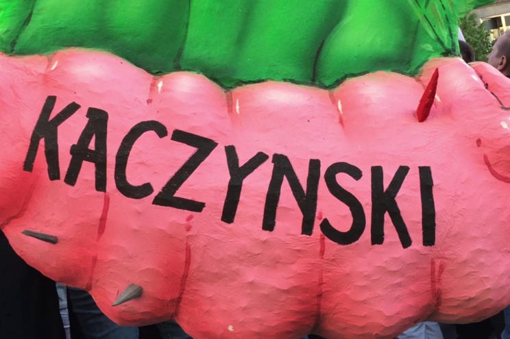 Jedną z najważniejszych instalacji podczas tej demonstracji był liść zżerany przez gąsienice. Na zielonym liściu widniał napis „demokracja”, a gąsienice miały przyporządkowane nazwiska. Gąsienicą specjalną był Putin, któremu w niszczeniu demokracji pomagali dwaj politycy czescy: minister finansów, oligarcha i właściciel wielu wpływowych mediów Andrej Babiš i prezydent Czech Miloš Zeman; do tego prezydent Słowacji Robert Fico, prezydent Erdoğan i oczywiście Orbán i Kaczyński. Ten liść symbolicznie pokazuje, jaki jest stan świadomości politycznej Czechów.