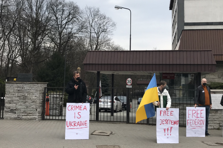 10 kwietnia koło Ambasady Rosji w Warszawie odbyła się akcja protestacyjna przeciwko aneksji Krymu i rosyjskiej agresji na Donbasie. Aktywiści domagali się także uwolnienia wszystkich Ukraińców nielegalnie przetrzymywanych na półwyspie przez członków represyjnych organów rosyjskiego okupanta.