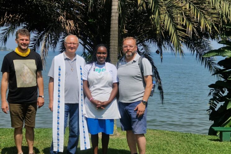Ks. Andrzej Tokarczyk i Adam Dakowicz wraz z mieszkanką Kibeho w Rwandzie / Fot. materiały własne