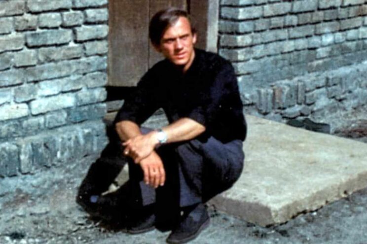Ks. Jerzy Popiełuszko na progu domu rodzinnego w Okopach / Zdjęcie ze zbiorów rodzinnych państwa Popiełuszków