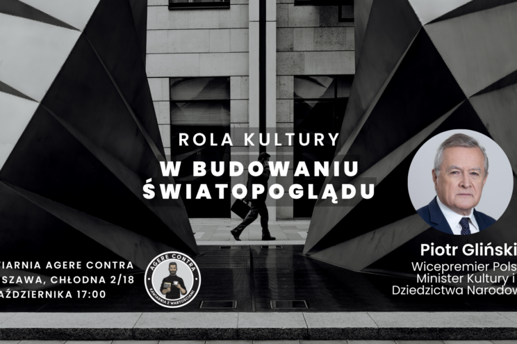 należy dokonać bezpłatnej rejestracji przez stronę Agere Contra – https://agerecontra.pl/wydarzenie/rola-kultury-w-budowaniu-swiatopogladu-piotr-glinski-wicepremier-polski/