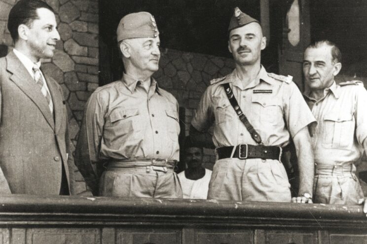 Tadeusz Romer, Władysław Sikorski, Władysław Anders i Tadeusz Klimecki podczas podróży inspekcyjnej Naczelnego Wodza na Bliskim Wschodzie 1943 | Fot. nieznanego autora, Wikipedia