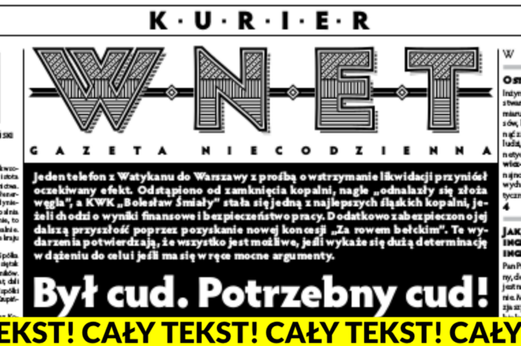 Media Wnet są po to, by w miarę swoich możliwości ten stan rzeczy zmienić. I w tym przypadku kopalnia „Krupiński” jest soczewką. Patrzymy, które media podejmą pałeczkę, by wraz z nami mówić o tym, jak jest.