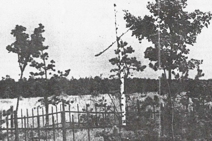 W sobotę 11 maja 1974 roku koparka zaczęła rozkopywać powstańczą mogiłę, przygotowując teren pod budowę Centralnej Magistrali Kolejowej. Zaskoczeniem dla operatora koparki oraz obecnych przy tym leśniczego Mariana Dudka i jego teścia Stanisława Jarosa było to, że łyżka koparki nie natrafiła na ślady powstańczego pochówku. Pod mogiłą ziemia stanowiła nienaruszoną caliznę. Dopiero kilkadziesiąt metrów dalej natrafiono na ludzkie kości.