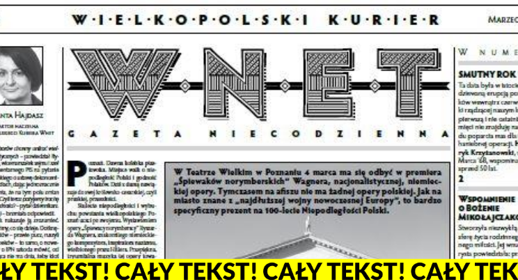 Artykuł wstępny Redaktor Naczelnej „Wielkopolskiego Kuriera WNET” Jolanty Hajdasz znajduje się na s. 1 marcowego „Wielkopolskiego Kuriera WNET” nr 45/2018, wnet.webbook.pl.