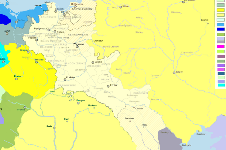 W 1569 r. Królestwo Polskie i Wielkie Księstwo Litewskie, w którego skład wchodziła dzisiejsza Polska, Litwa, Łotwa, Białoruś, Ukraina i częściowo Mołdawia, na mocy unii lubelskiej utworzyły Rzeczpospolitą Obojga Narodów, stanowiącą unię realną tych państw. Król Stefan Batory wybudował sieć kanałów znanych jako Szlak Batorego, ułatwiających transport rzeczny między miastami pruskimi a Rzeczpospolitą.