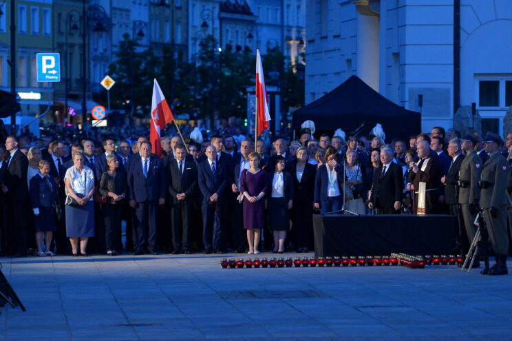 Prezes PiS przemawiał na zakończenie obchodów 87. miesięcznicy smoleńskiej. Uczestnicy wieczornego zgromadzenia przeszli w marszu pamięci z warszawskiej archikatedry św. Jana – gdzie odprawiona została msza w intencji ofiar katastrofy smoleńskiej – przez plac Zamkowy, Krakowskie Przedmieście przed Pałac Prezydencki. Na czele marszu niesiony był transparent z napisem „Smoleńsk – pamiętamy”.