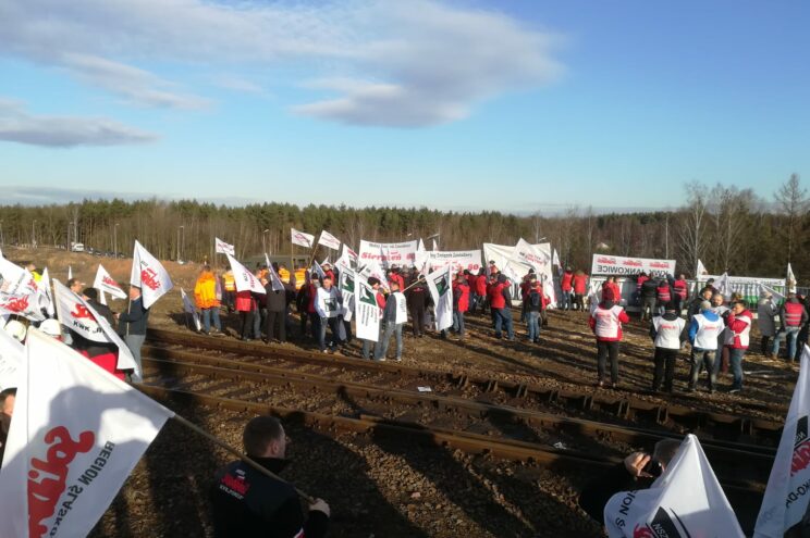 Jednak w czasie, gdy pani senator oglądała „łzy radości” osób, którym przekazano z jej biura węgiel dostarczony przez związkowców, 18 lutego od 8 rano kilkuset górników z 13 związków zawodowych tworzących sztab protestacyjno-strajkowy w PGG zorganizowało w euroterminalu przeładunkowym Sławków blokadę torów należących do PKP Linia Hutnicza Szerokotorowa. Część górników przyjechała przygotowana na długotrwały protest: mieli kuchnię polową, kamper dla nocujących.