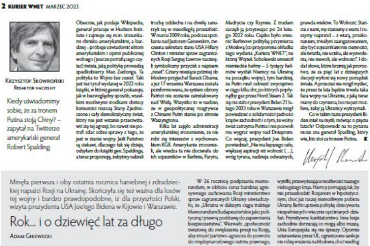 Artykuł wstępny Krzysztofa Skowrońskiego, Redaktora Naczelnego „Kuriera WNET”, znajduje się na s. 2 marcowego „Kuriera WNET” nr 105/2023.